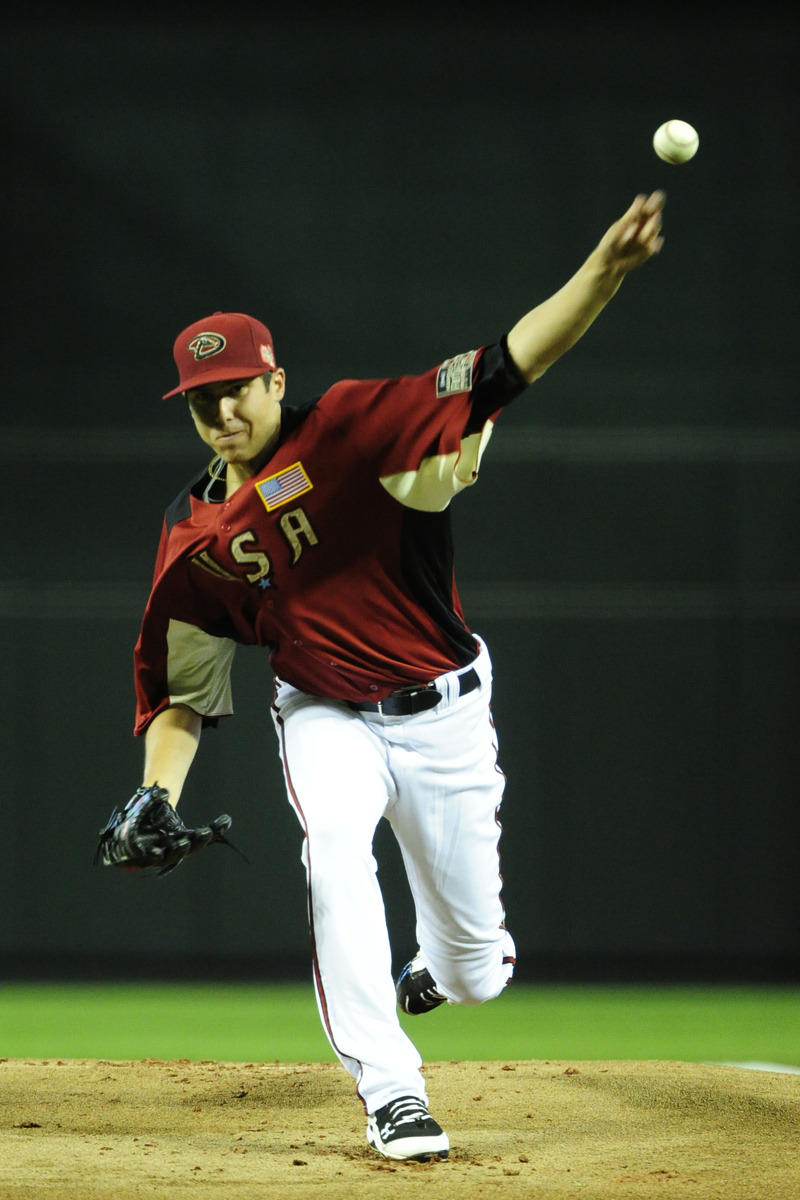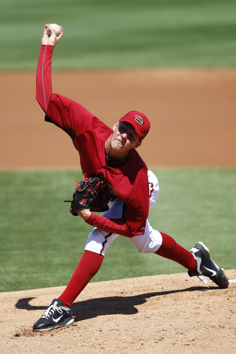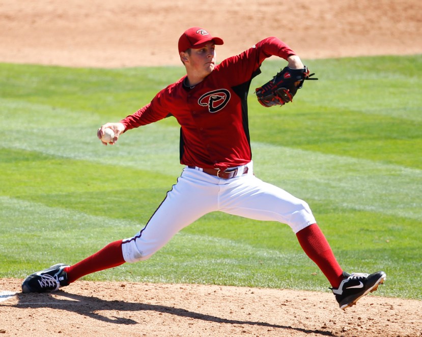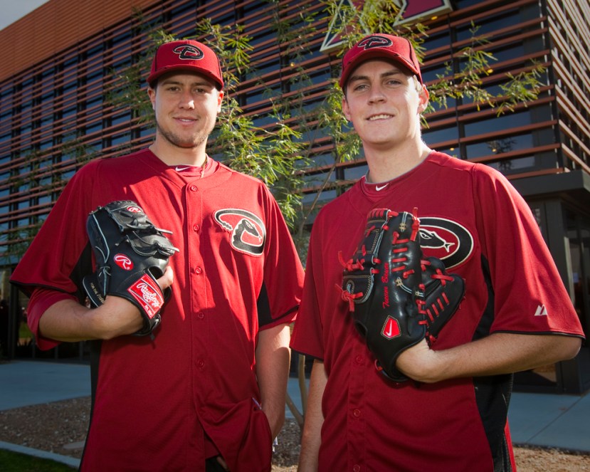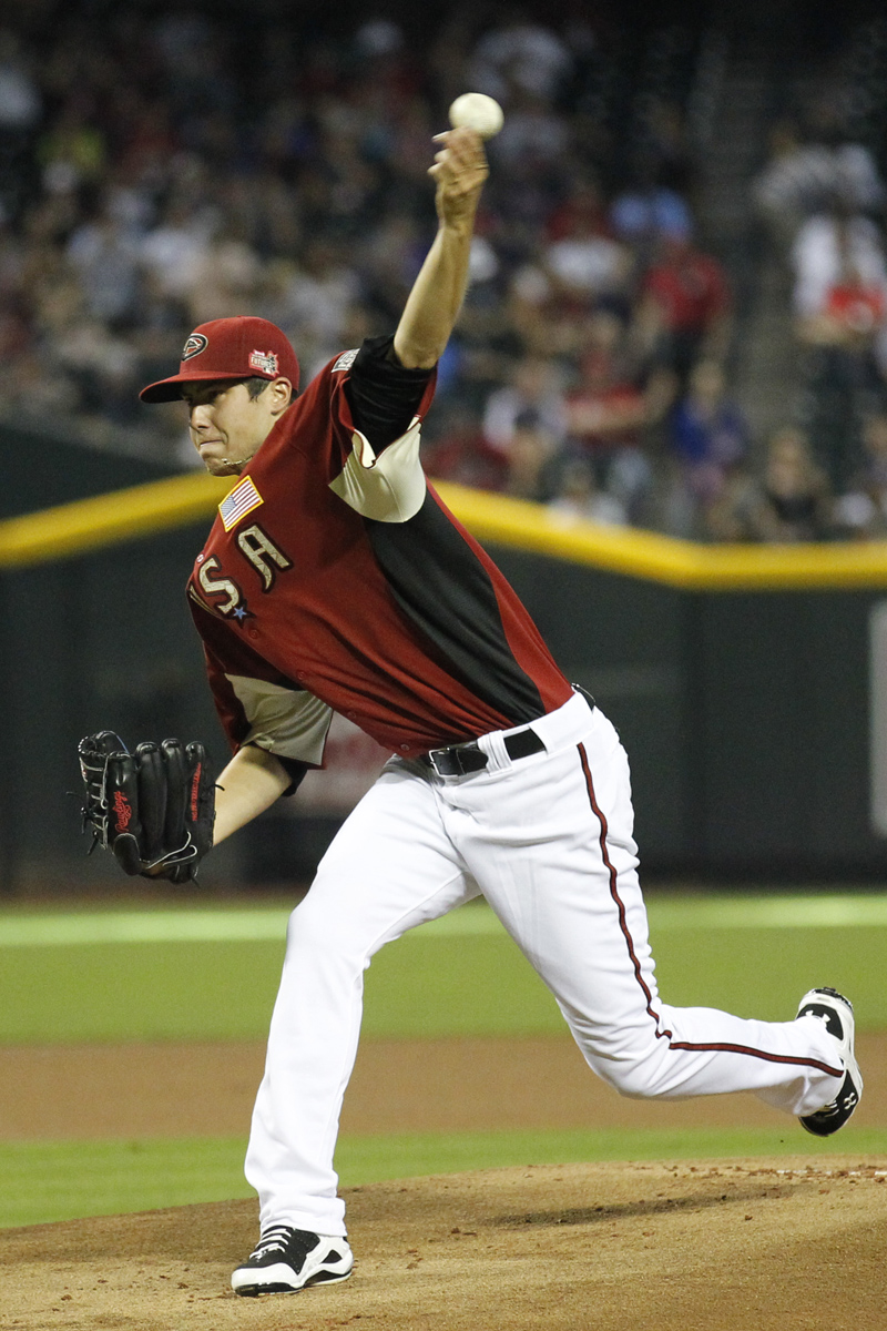 The photo wells at Chase Field are on the inside of either dugout, near the on-deck circles. Those wells are where we shoot from most of the time. But, sometimes we roam out into different locations. This past homestand, the dugout suite on the third base side was empty, so we were able to capture some images from an angle that we don’t see very often (as you can see in the photos of the pitchers above and the ones below).