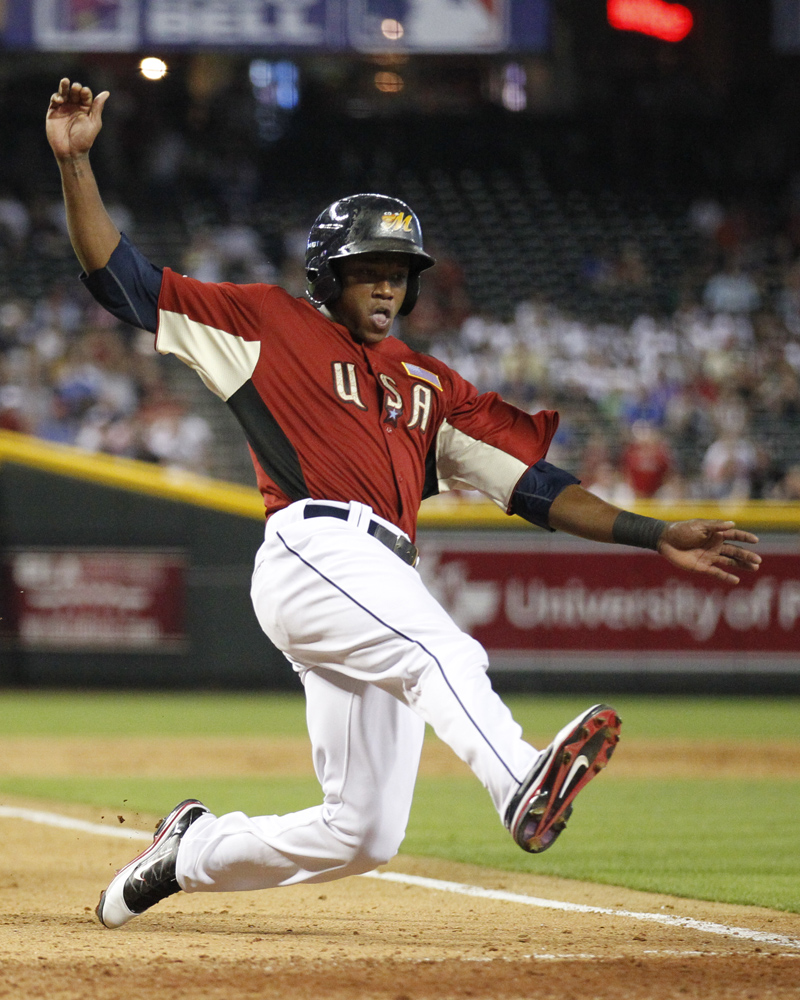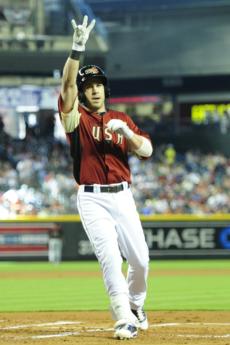 As team photographers, we have the privilege to get this close to the action. It’s something that we try to take advantage of as much as we can. And, as team photographers, every once in a while we get requests for help from visiting teams asking for special coverage. When Cleveland called up prospect Lonnie Chisenhall before Monday’s game, we were asked to get some photos of his Major League debut.