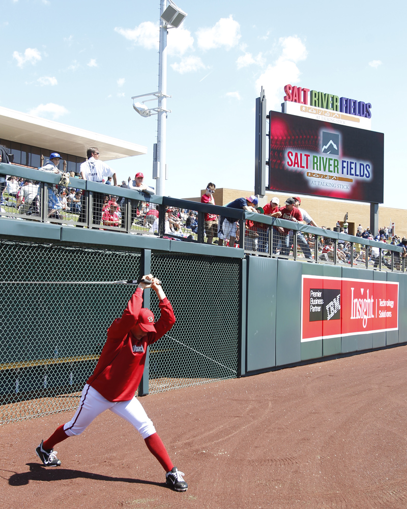 While we we’re out there during batting practice, Chris Young and Gerardo Parra couldn’t help but watch and smile as Wily Mo belted baseballs deep into the bleachers. But, Justin Upton was clearly inspired or provoked and capably put on a show of his own.